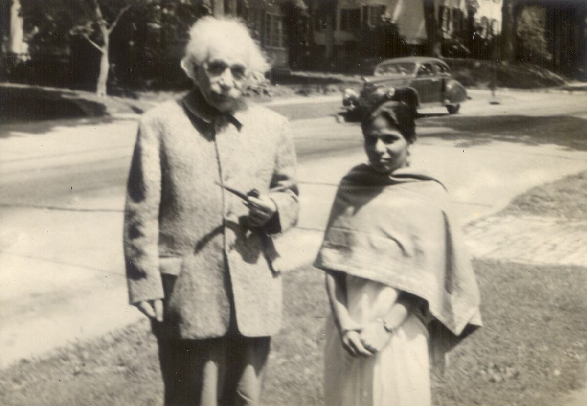 It was a sunny day in the 1940s when Charat drove 75 kilometers with me from New York to Princeton. I had just moved from Delhi to New York, where I still live, after marrying Charat, a statistical analyst with the United Nations. Charat liked going places, meeting people, and making new friends. And, now that he was married, he also liked taking his young bride along. Our marriage was relatively brief because Charat passed away suddenly in 1966 while we were still young. Among the many mementos he left behind is a framed black-and-white photograph in our sitting room. It’s a photo of Albert Einstein and me.